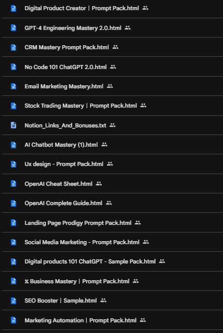 Master Any Skill Instantly: Dominate high-demand fields with included packs for GPT-4, No-Code Design, SEO, Social Media Marketing, Stock Trading, and much more.