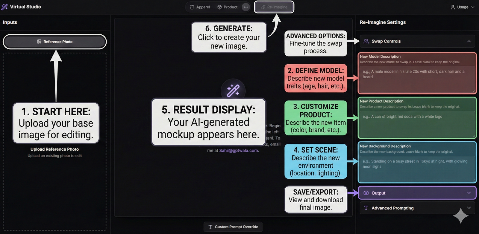 Every feature is designed to replace long photoshoots, costly edits, and endless revisions — turning your ideas into ready visuals in seconds.